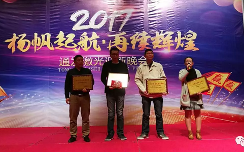 通發(fā)激光的飛躍離不開通發(fā)家人在各自崗位上的平凡付出,此次晚會開場首秀便是優(yōu)秀員工的頒獎,經(jīng)過對2016全年專業(yè)技術(shù)、綜合素質(zhì)的評估,7位分別在研發(fā)技術(shù)、非標(biāo)焊機(jī)生產(chǎn)、電源、標(biāo)準(zhǔn)焊機(jī)生產(chǎn)、跟單、財務(wù)、行政等崗位上辛勤耕耘,充滿正能量的家人脫穎而出。